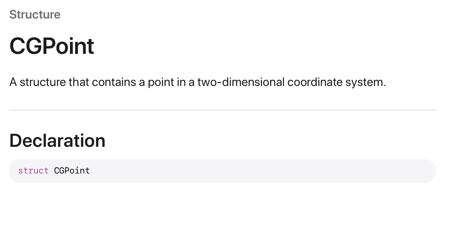 CGPoint는 2차원 좌표 시스템의 점을 포함하는 구조체라고 나와있어요