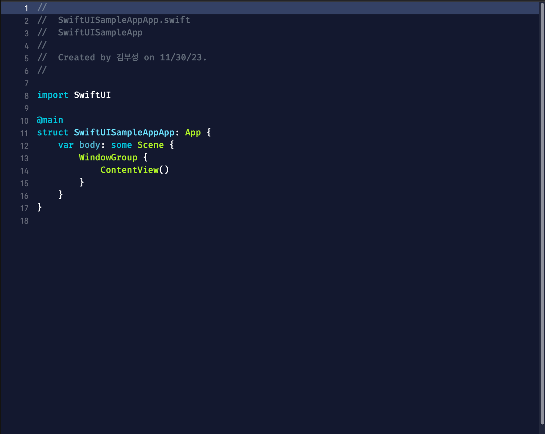 제가 프로젝트 명을 SwiftUISampleApp이라고 지었더니 AppApp이 되었네요 👀