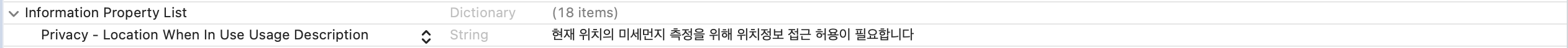 과제도 이왕 만드는김에 제대로 만들어보자라고 생각해서 앱의 장점인 현재 위치를 받아와 주변 측정소의 미세먼지 값을 쓰기로 했어요.